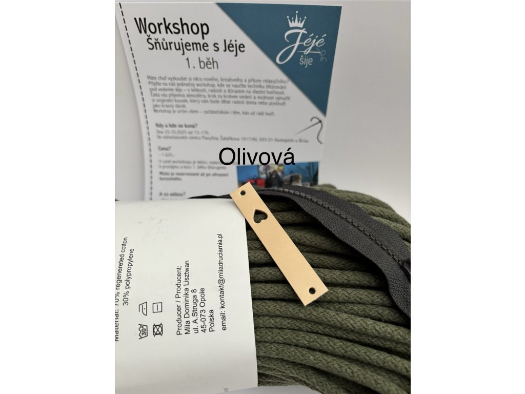 V ceně workshopu je šňůra Mila 6 mm určená k šití